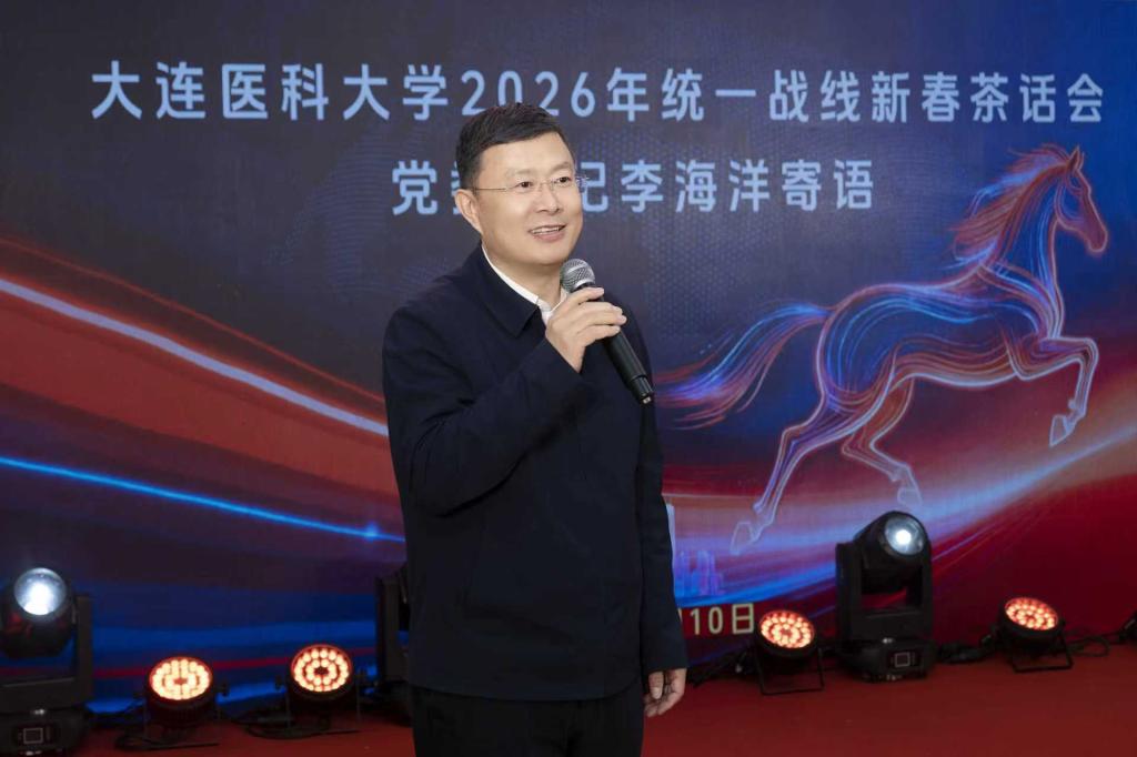 1月10日,大连医科大学统一战线新春茶话会在我校举行。学校党委书记李海洋,党委副书记王运河出席活动。学校各民主党派基层组织负责人、无党派人士代表,各级党外人大代表、政协委员等七十余人欢聚一堂,围绕学校“十五五”规划开局之年的发展大计,畅所欲言,共绘蓝图。